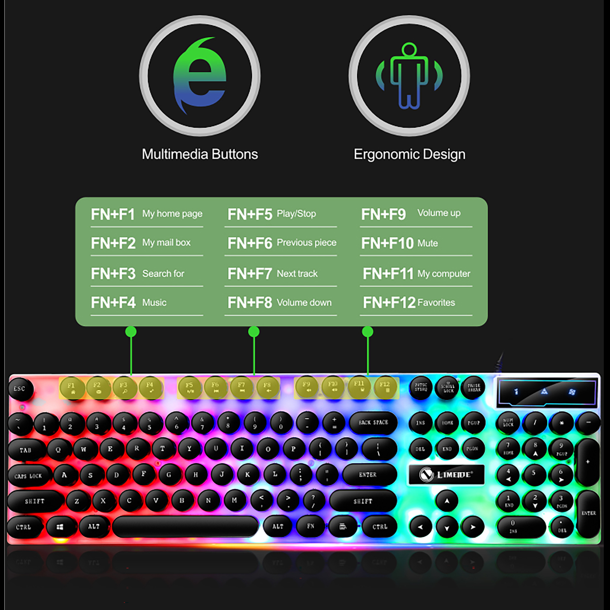 کیبورد لایماید GTX300 از سوییچهای ممبران نرم و کمصدا بهره میبرد که علاوه بر تایپ راحت، عملکرد دقیق و سریعی را در بازیها ارائه میدهد. این کیبورد دارای ۱۲ کلید میانبر مالتیمدیا است که امکان مدیریت سریع تنظیمات صدا، موسیقی و برنامهها را فراهم میکند. مقاومت در برابر گرد و غبار و رطوبت نیز از دیگر ویژگیهای کاربردی این کیبورد است که باعث افزایش طول عمر آن میشود. ماوس این ست نیز با دقت ۱۶۰۰ DPI و حسگر اپتیکال باکیفیت، حرکت دقیق و کنترل بهتری را برای گیمرها فراهم میکند. این ماوس دارای ۳ کلید کاربردی است که برای استفاده روزمره و گیمینگ مناسب بوده و کنترل راحتی را ارائه میدهد.